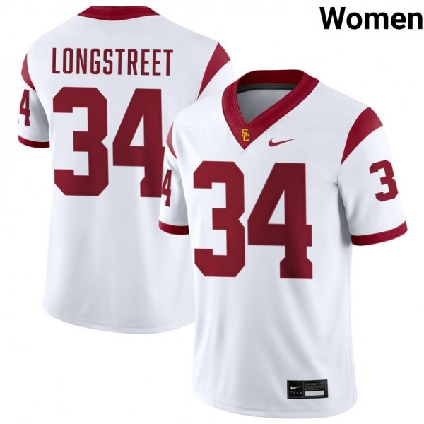 • Product Name: Women's Kevin Longstreet White USC Trojans #34 College Football Embroidery Jersey