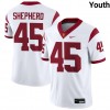 • Classic Design: Bold White colorway with embroidered USC logo and Trojans team branding on the chest. Features player name "Shepherd" and number "#45" on the back, with team logos on the sleeves.